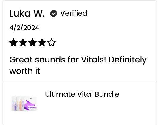 When you order the Ultimate Vital Bundle today, we'll also include our Real Instruments Pack and 808s + Subs Pack as a special bonus with your order.